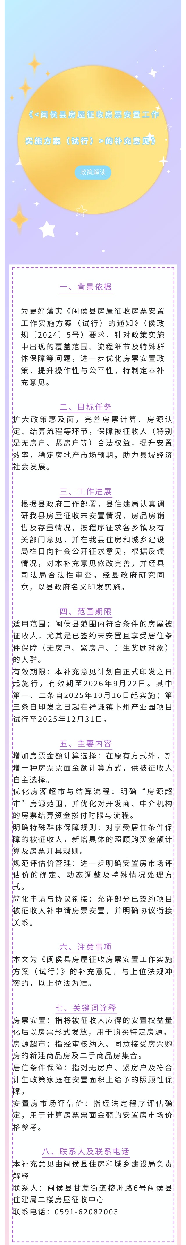 (图解)《<闽侯县房屋征收房票安置工作实施方案(试行)>的补充意见》政策解读