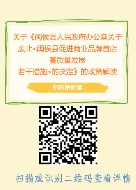 (h5解读)关于《闽侯县人民政府办公室关于 废止<闽侯县促进商业品牌首店高质量发展 若干措施>的决定》的政策解读