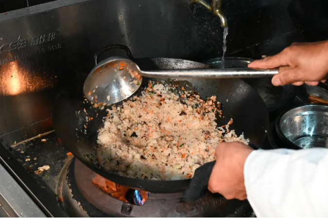 ▲陈鸿在灶台前烈火烹炒