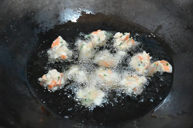 最后,将搅拌好的肉泥制成厚薄均匀的饼状或丸状,放入滚水中蒸熟,以保持其鲜嫩的口感。临吃时,再用油锅煎炸至金黄酥脆,即可装盘食用。