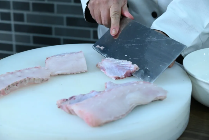 ▲取海鳗鱼中段,洗净去骨去皮,切成规整鱼段