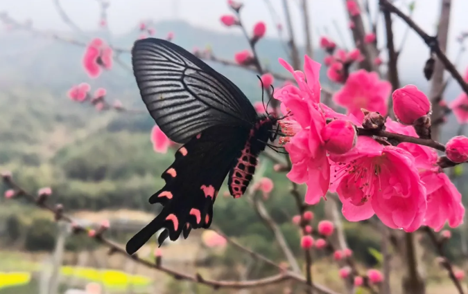 除了金灿灿的油菜花,村里还在桃花潭、村主干道、龙山会议纪念馆周边种下千余株桃树,让“桃”文化深深扎根田间地头。春日里,桃花潭畔200多株桃树吐露芳华,粉桃或含苞如珠、或绽放吐蕊,与潭中碧波相映成趣,蝴蝶穿梭花间,为田园画卷添了几分灵动。