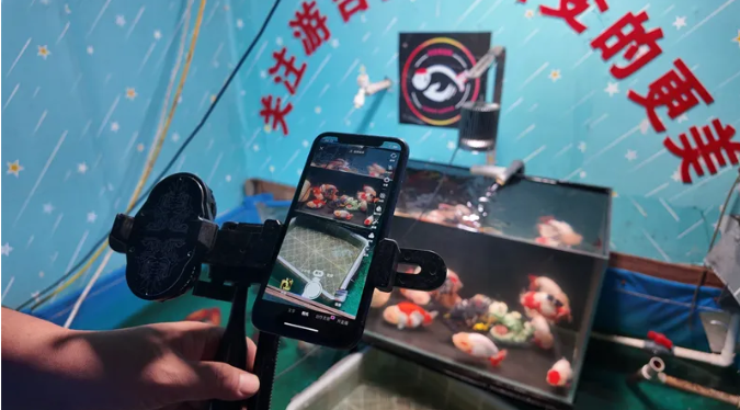▲郭辉正在直播金鱼