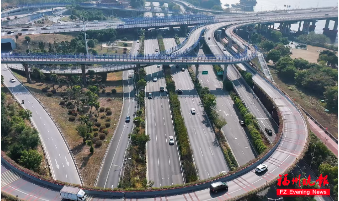 道庆洲大桥是全省首座双层公轨两用桥梁,于2022年建成通车。桥梁采用钢桁结合梁结构,线条简洁流畅,大桥轻盈通透。从海峡国际会展中心驾车通过道庆洲大桥前往滨海新城,最快缩短至20分钟,福州中心城区与滨海新城车辆往来“半小时通勤圈”成为现实。