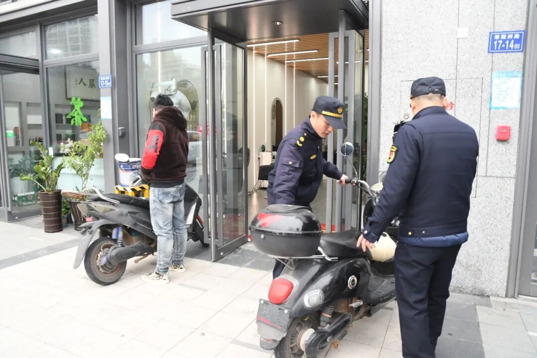 ▲店铺门口的电动车整治后,公共区域清爽干净