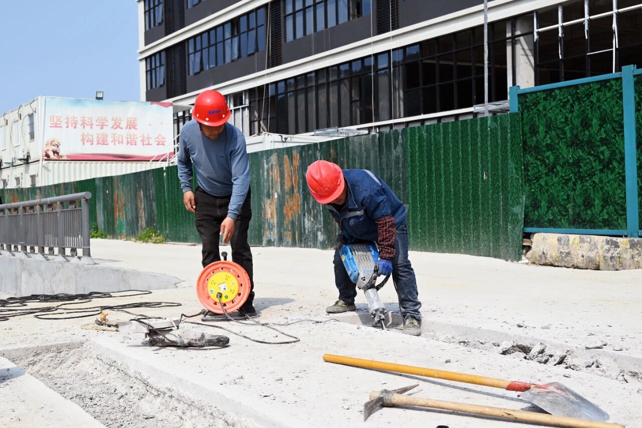 现场呈现一派繁忙有序的施工景象