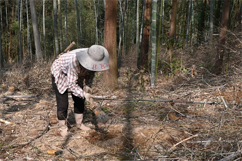 挖笋是个技术活,更是个“眼力活”。村民老林告诉记者,有经验的笋农能通过地面微小的隆起或裂缝,精准判断地下春笋的位置和大小。下锄要快、要准,既要完整挖出肥嫩的笋体,又不能伤及相连的竹鞭,以确保来年竹林持续丰产。