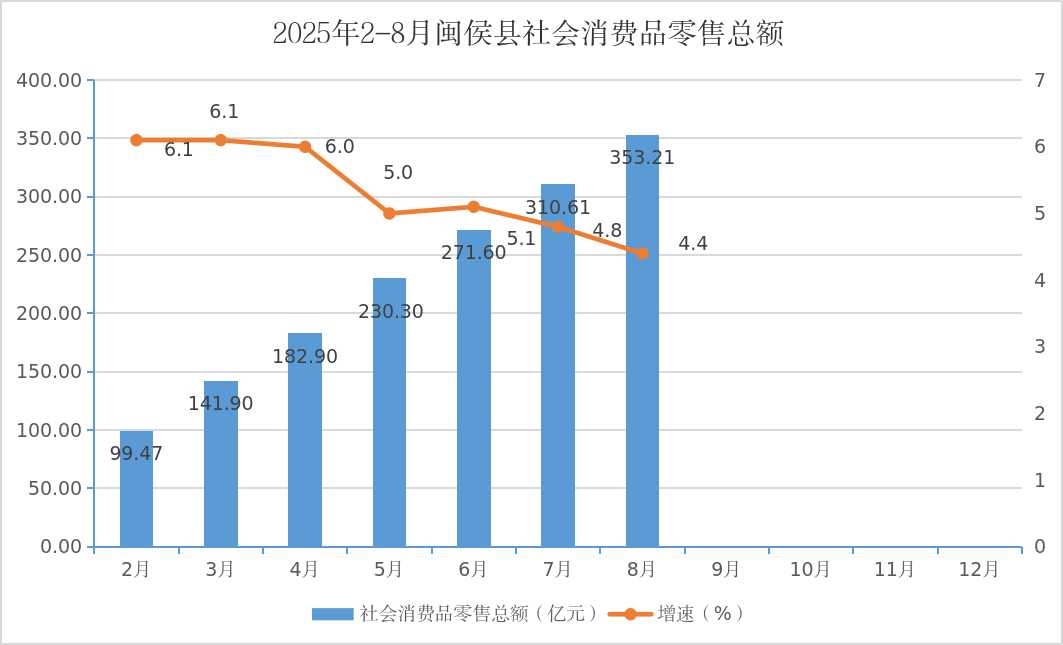 【图表】2025年2-8月闽侯县社会费品零售总额