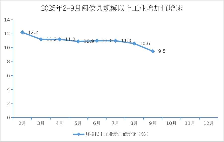 【图表】2025年2-9月闽侯县规模以上工业增加值增速