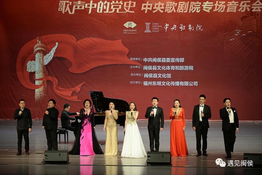 7月10日晚,由中共闽侯县委宣传部指导,闽侯县文化体育和旅游局主办,闽侯县文化馆承办的高雅艺术走进闽侯系列活动——庆祝中国共产党成立100周年《歌声中的党史》音乐会在闽侯县影剧院举办,来自中央歌剧院的数十位国家级著名歌唱家为市民带来了一场红色音乐文化盛宴。音乐会以中国共产党百年发展为主题,共遴选了18首经典红色音乐作品进行演唱,以音乐的形式带着观众回望百年党史,用悠扬的歌声铭记奋斗初心,抒发对党的无限忠诚和对祖国的无限热爱,献礼建党百年。