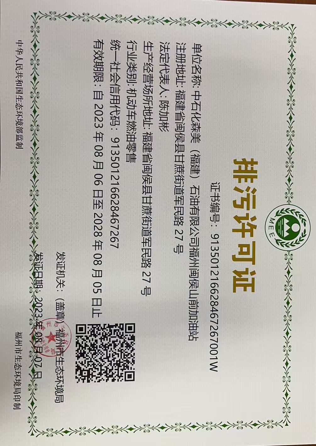中石化森美(福建)石油有限公司福州闽侯山前加油站 |