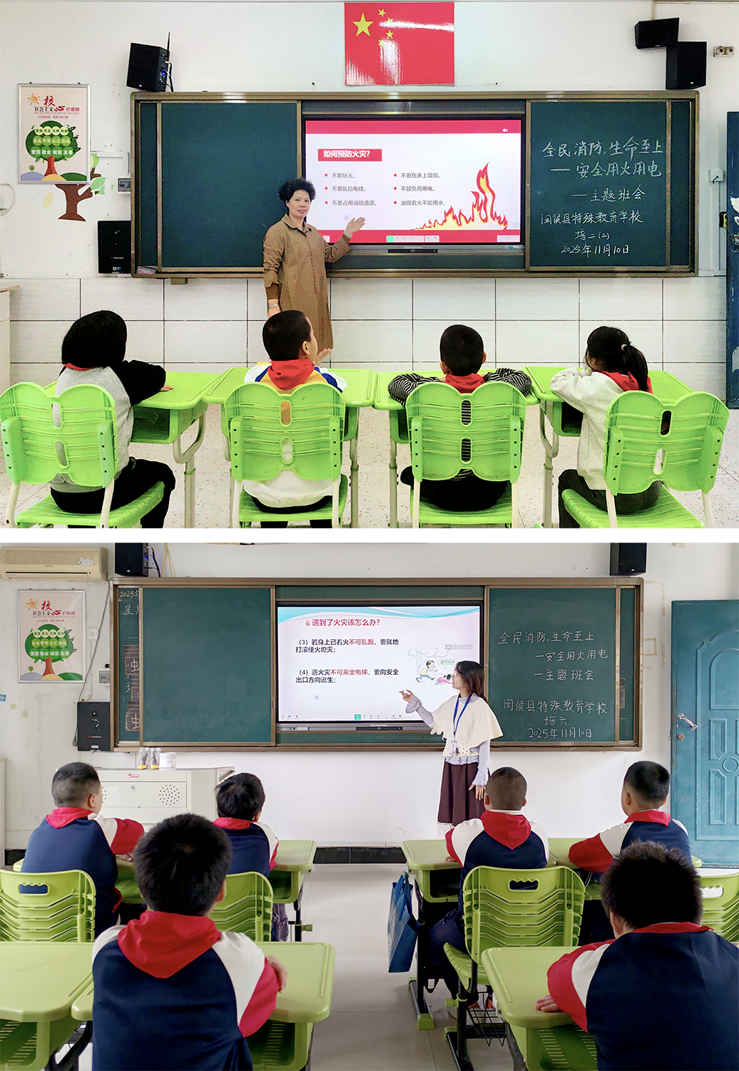 11月11日,闽侯县特殊教育学校紧扣“全民消防、生命至上”主题,开展全国消防日系列宣教活动。师生通过动画班会、黑板报创作及全员应急演练,掌握报警、灭火、逃生要领,3分钟内安全有序完成疏散。