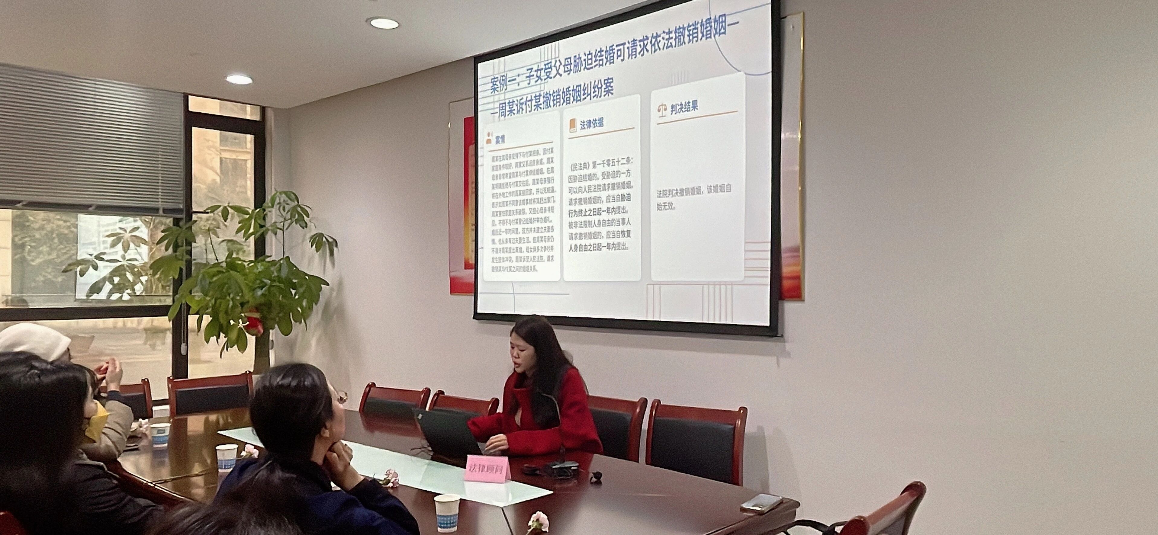 讲座现场,法律顾问紧扣妇女日常法律需求,围绕民法典婚姻家庭编、妇女权益保障法、反家庭暴力法三大核心法律,结合真实典型案例,用接地气、听得懂的语言,细致讲解婚姻家庭纠纷、反家暴、夫妻共同财产与债务认定等高频法律问题。同时,现场清晰梳理维权渠道、证据收集要点、法律援助流程,引导大家树立“办事依法、遇事找法、解决问题用法”的法治思维,学会用法律武器保护自身合法权益。