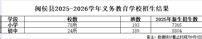 闽侯县2025-2026学年义务教育学校招生结果