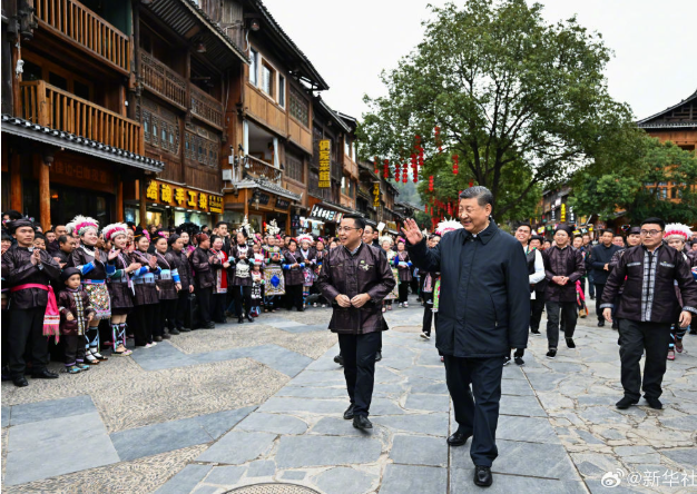 【习近平:民族的特色,很古朴也很时尚】习近平总书记17日下午来到贵州黎平县肇兴侗寨,观看侗族大歌表演,察看村寨风貌和侗族文化展示中心,深入侗乡织、染、绣特色产业基地,同乡亲们亲切交流。习近平说,吊脚楼、古寨、非遗乐器、侗族大歌、蜡染工艺,这些民族的特色,很古朴也很时尚。有党和政府的支持,希望乡亲们的幸福生活更上一层楼,把乡村振兴做得更好,把中国式现代化建设得更好。临别时,乡亲们齐声高唱《侗歌声声唱给党》,热情欢送总书记。歌声悠扬,在村寨久久回荡。(文字记者:朱基钗;摄影记者:谢环驰、燕雁、申宏、翟健岚)