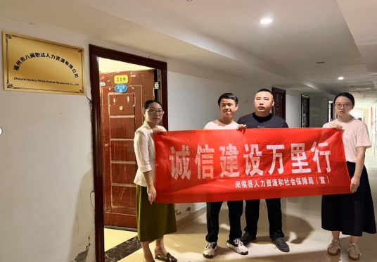 为进一步规范闽侯县企业诚信用工,做好诚信文化宣传工作,2025年7月19日,我局审批科、劳动关系科对申请劳务派遣单位的福州市八闽职达人力资源有限公司进行现场核验,借助此次机会,向企业开展“诚信建设万里行”宣传活动。